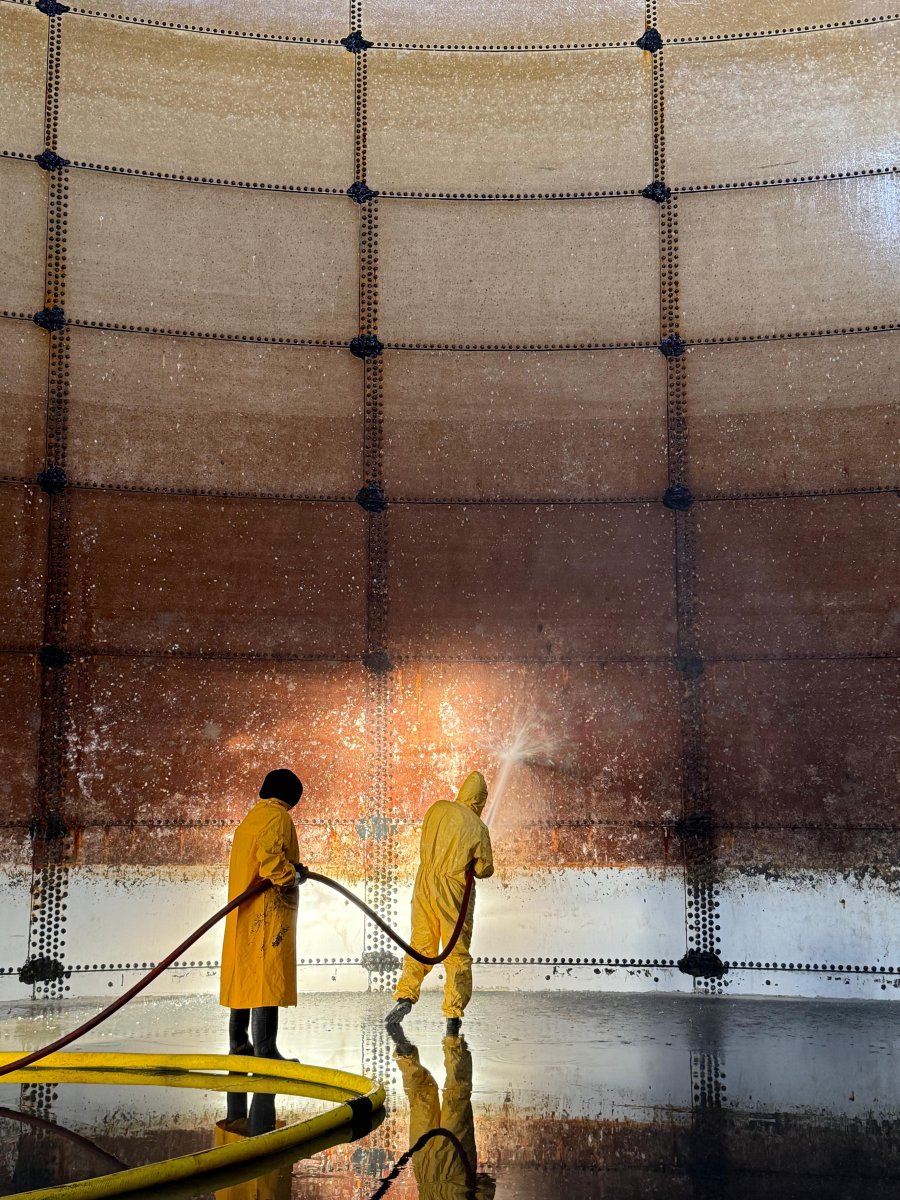 Las tareas comenzaron el miércoles 23 de julio e incluyeron limpieza manual durante cuatro días consecutivos, seguida por la decisión estratégica de realizar un corte en el tanque para permitir el ingreso de maquinaria pesada, lo cual aceleró considerablemente los trabajos.
