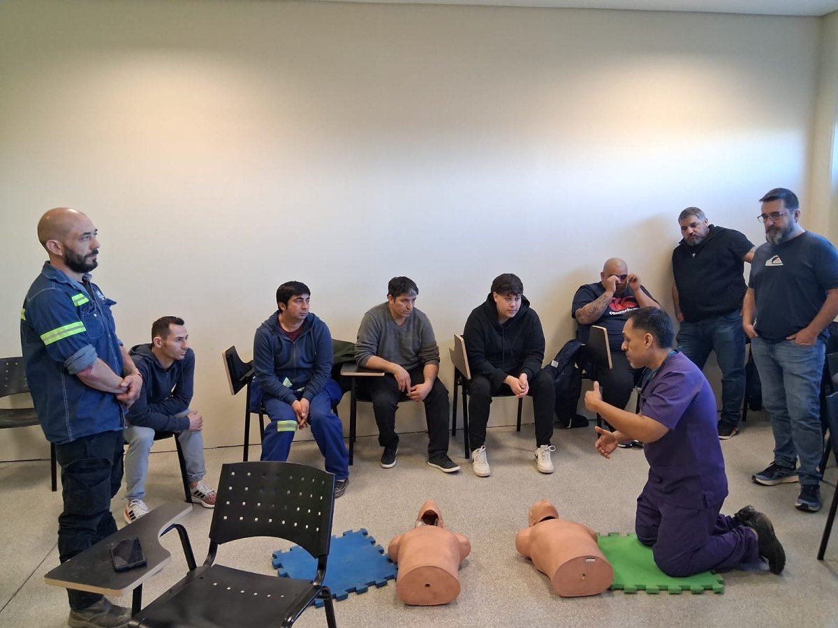 La capacitación, de carácter teórico-práctico, incluyó la enseñanza de técnicas de reconocimiento de una emergencia, activación del sistema de salud, maniobras de compresiones torácicas y ventilación, uso del Desfibrilador Externo Automático (DEA) y medidas de primeros auxilios básicos. De esta manera, se brindaron herramientas fundamentales para que el personal pueda actuar con rapidez y eficacia, frente a situaciones críticas.