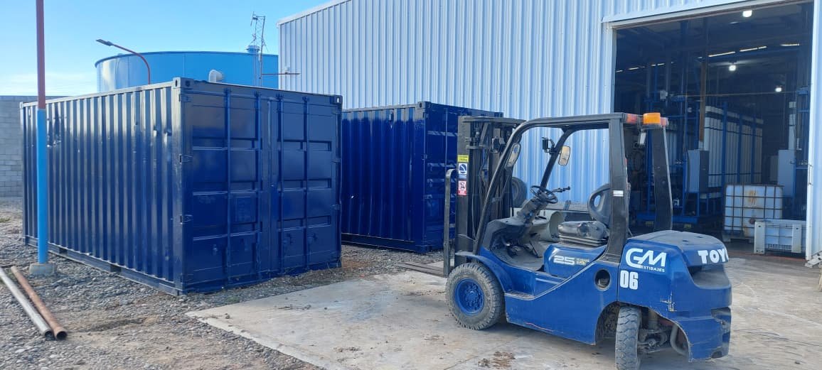 Por otra parte, en Puerto Deseado arribaron módulos que serán destinados a depósito y taller para la Planta de Ósmosis Inversa de Puerto Deseado. La incorporación de estos nuevos espacios permitirá mejorar la organización operativa, contar con herramientas y equipamiento en el lugar de trabajo, agilizar los tiempos de respuesta y optimizar la productividad del personal.