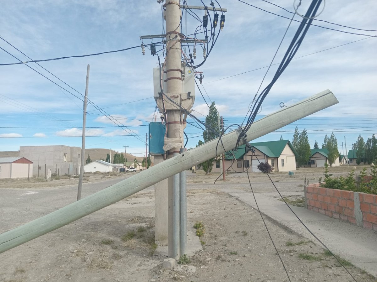 En Puerto Santa Cruz, se registraron postes de telefonía derribados por el viento caídos sobre líneas de energía. El personal local trabajó para restablecer las líneas que no resultaron afectadas y asegurar las zonas comprometidas.