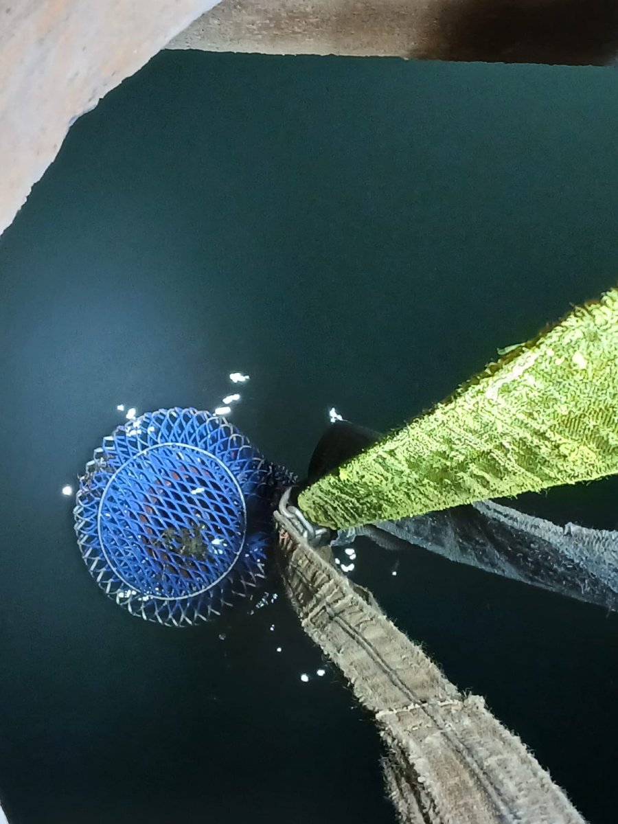 El procedimiento consistió en el reflotamiento de una bomba sumergida de aproximadamente 1.000 kilogramos, ubicada en la cámara de captación de agua a una profundidad cercana a los seis metros. Este equipo, fundamental para el sistema de provisión de agua potable, se encontraba fuera de servicio a raíz de una falla técnica.