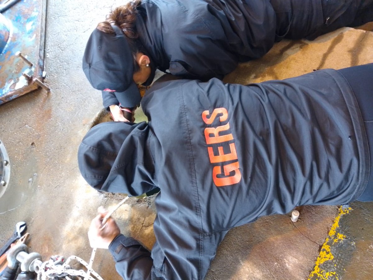 Para llevar adelante la tarea, buzos especializados descendieron hasta la cámara de captación y aseguraron la bomba mediante el uso de cadenas y grilletes. Posteriormente, se emplearon un trípode y un aparejo eléctrico para izar el equipo de manera segura hasta la superficie. Durante el operativo, fue necesario realizar el corte de un filtro metálico con una amoladora, ya que la bomba había quedado trabada en una estructura interna.