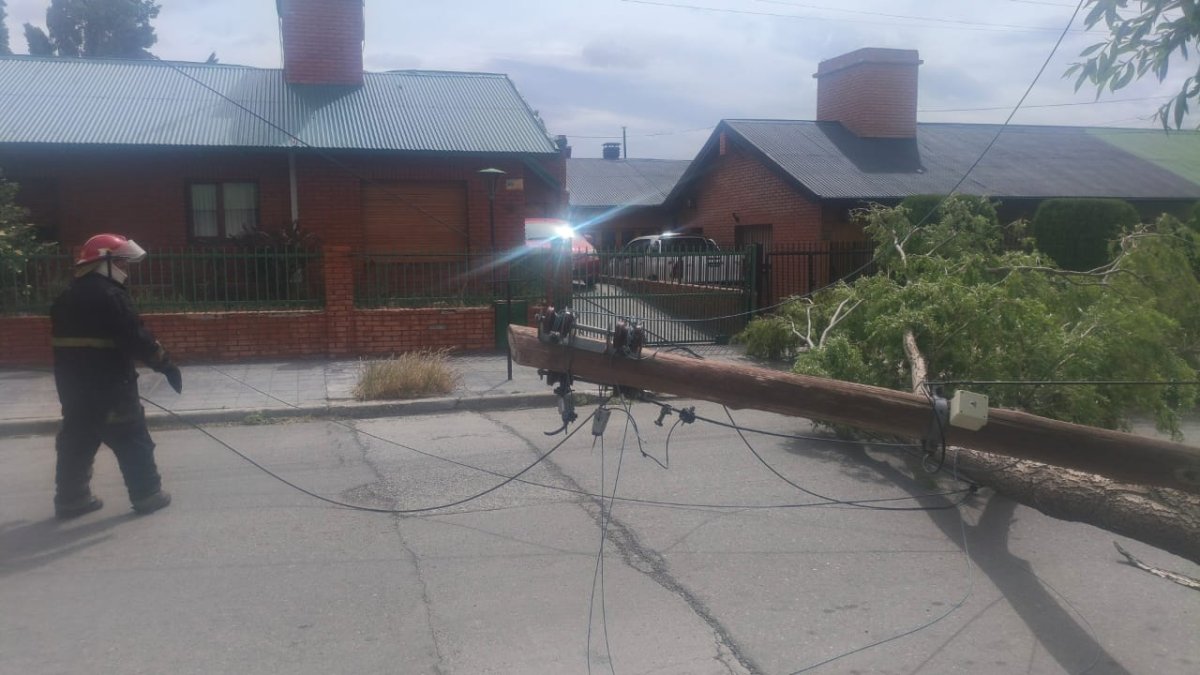 Como consecuencia del fuerte viento que afecta a la zona desde la madrugada de hoy, sábado 13 de diciembre, se han registrado distintos inconvenientes, entre ellos: pilares quebrados, caída de árboles que arrancaron cables y derribaron postes, incluso sobre la calzada, como en el cruce de calle Patagones. Asimismo, se registran varios puntos con el servicio interrumpido en los sectores de Zona Franca, Chimen Aike, Mutual de la Caja de Servicios Sociales, entre otros, además de diversas zonas afectadas por diferentes motivos, incluyendo la caída de postes en distintos puntos de la ciudad.