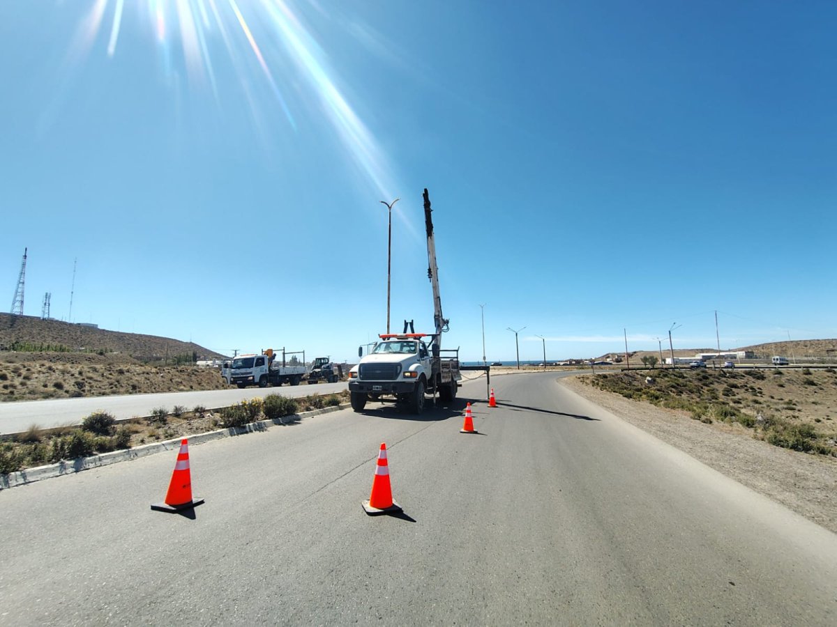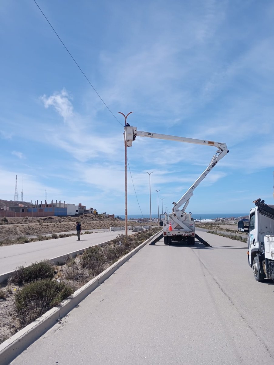 Trabajos de iluminación en distintos sectores de Caleta Olivia