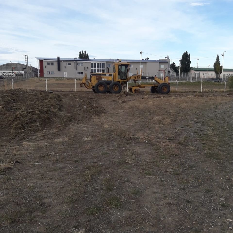 En ese marco, personal del Distrito Vial Río Gallegos llevó a cabo tareas de limpieza y nivelación de un predio de la Secretaría de Estado de Deporte y Recreación, que será destinado a la realización de una cancha de césped sintético.