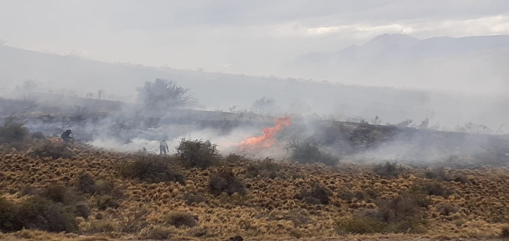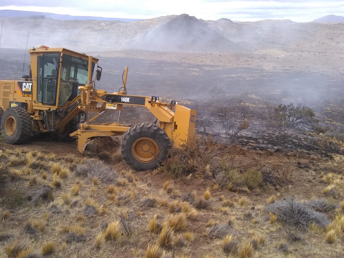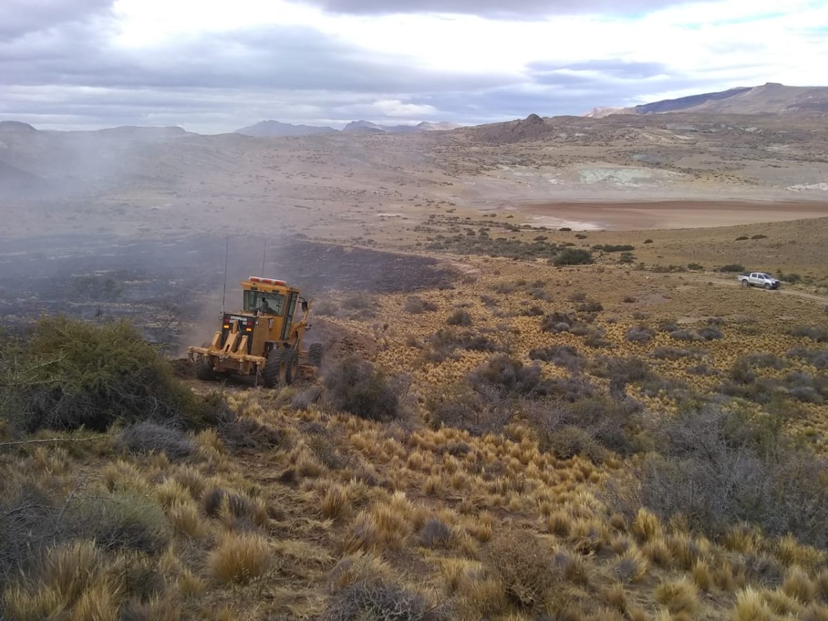 Luego de una tormenta eléctrica, personal de Vialidad Provincial, junto a Bomberos de la provincia, llevaron a cabo tareas para extinguir el fuego que se generó en la Estancia El Salitral, Ruta Provincial N° 41.