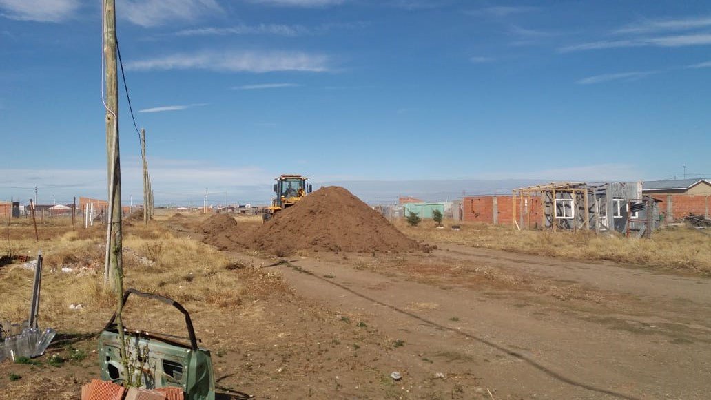 El presidente de la Administración General de Vialidad Provincia, Mauricio Gómez Bull, recorrió el barrio Patagonia de Río Gallegos donde el personal de la AGVP realiza el acopio de material que luego será depositado en canchas del COSEBA Rugby Club y del Club de Básquet San Miguel.