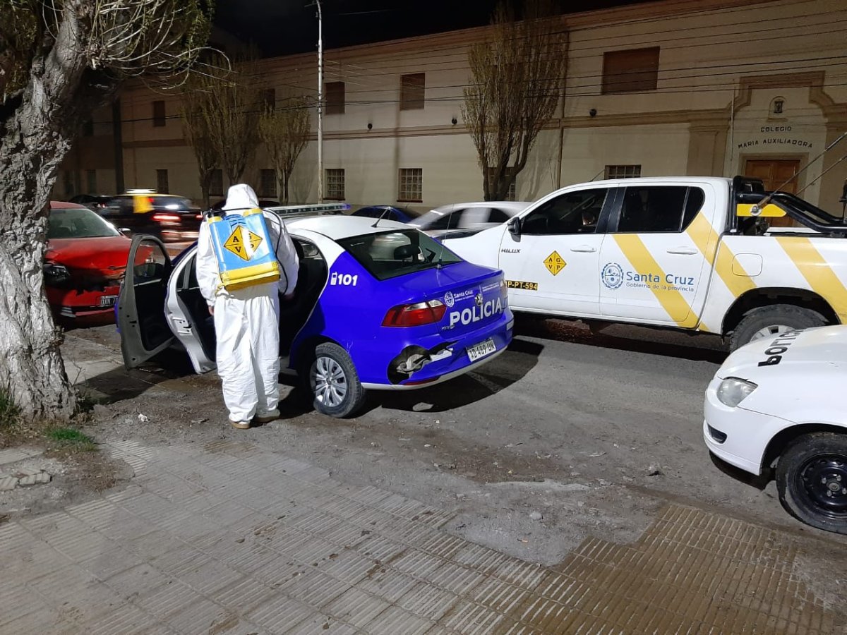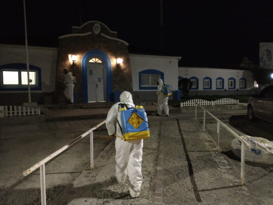 El Gobierno de Santa Cruz, a través de Vialidad Provincial, continúa con los operativos para la sanitización de distintos edificios de Río Gallegos. La tarea se ejecuta durante la noche en espacios altamente frecuentados por vecinxs.