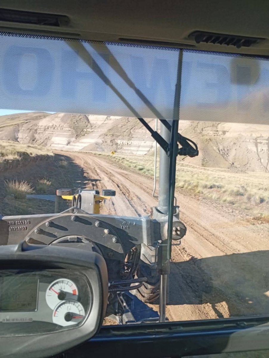 Personal y maquinaria del Distrito Perito Moreno de Vialidad Provincial, realizan trabajos de mantenimiento y conservación sobre la Ruta Provincial N°41, en el tramo entre Los Antiguos y Lago Posadas.