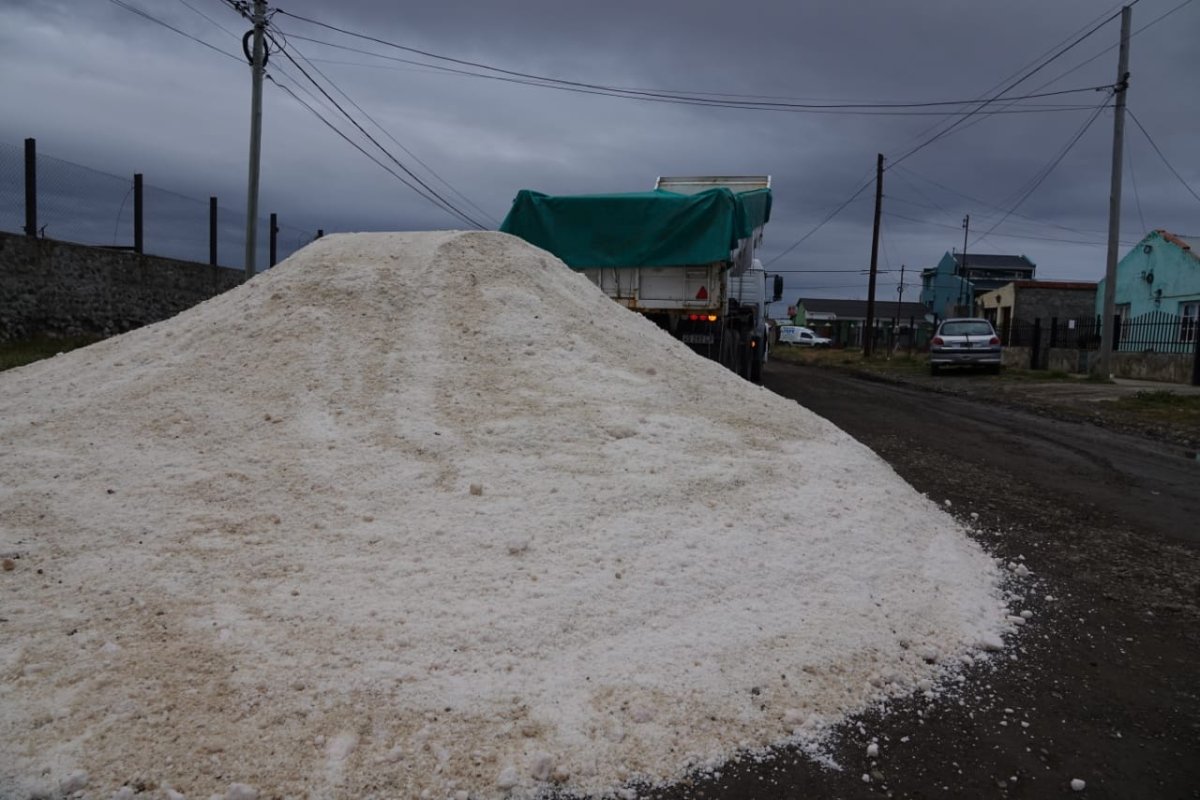El presidente del organismo, Mauricio Gómez Bull recorrió las localidades de 28 de Noviembre y Río Turbio para entregar sal para el deshielo de las calles.
