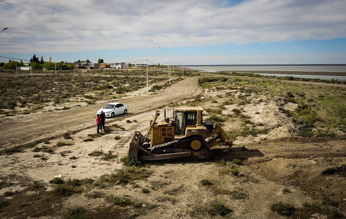 En el marco de la colaboración que la Administración General de Vialidad Provincial brinda a los distintos municipios, personal de la institución se encuentra realizando la nivelación de terrenos de Puerto Santa Cruz para un futuro loteo.