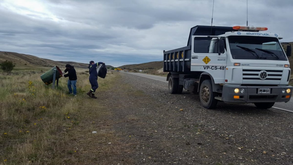 Personal de la Administración General de Vialidad Provincial, llevó a cabo la recolección de residuos de los cestos de basura dispuestos a lo largo de la Ruta Provincial N° 5, en el tramo comprendido entre Güer Aike - La Esperanza.