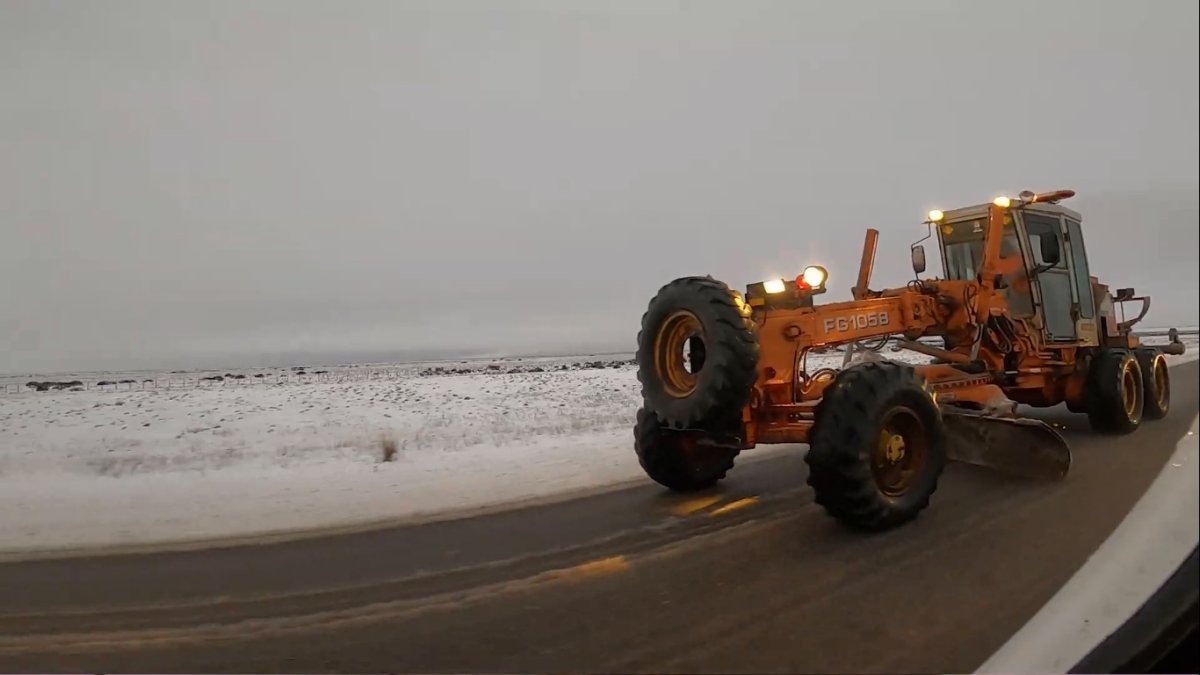 En la oportunidad, sobre la Ruta Provincial N° 5 tramo Güer Aike – La Esperanza, agentes de la AGVP realizaron tareas de despeje de nieve y distribución de sal con maquinaria de la Administración.