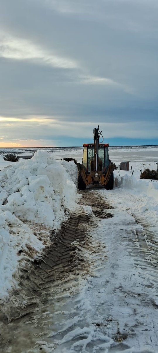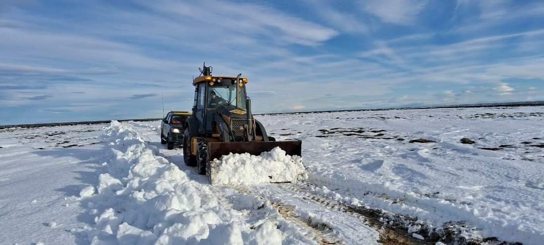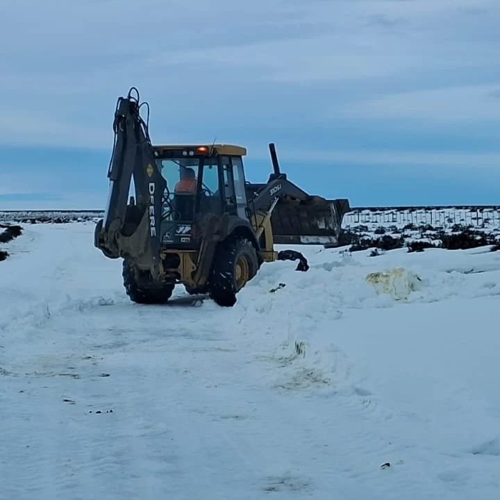 En la jornada de ayer, un equipo de trabajadores del Distrito Vial Río Gallegos a cargo de Roberto Antipa en conjunto con el jefe de técnica Godoy Luis, de la Administración General de Vialidad Provincial, tuvieron a su cargo el despeje del camino hacia los dos establecimientos rurales.
