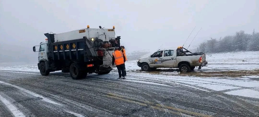 Debido al registro de caída de nieve en sectores de la provincia, Vialidad llevó a cabo múltiples acciones para brindar a los usuarios de las rutas seguridad, por ello realizó tareas de despeje y distribución de sal.