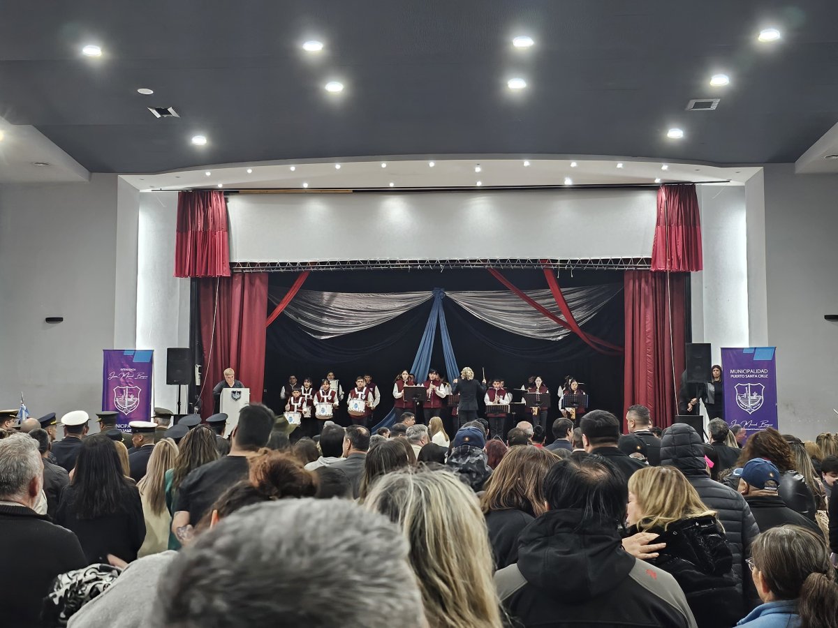 Así lo sostuvo el Jefe de Gabinete de Ministros, Daniel Álvarez, quien acompañó a la comunidad de Puerto Santa Cruz en la celebración del 146° aniversario. El acto central se realizó en el Auditorio Municipal “Mario Gustavo Montiel” colmado de vecinos, invitados especiales y banderas de las instituciones educativas.