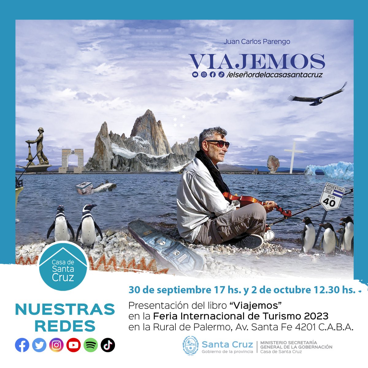 Este sábado, a las 17:00, el conocido youtuber santacruceño presentará “Viajemos”, un libro que invita a lxs lectorxs a transportarse a un apasionante viaje a través de los tesoros ocultos de la provincia de Santa Cruz.