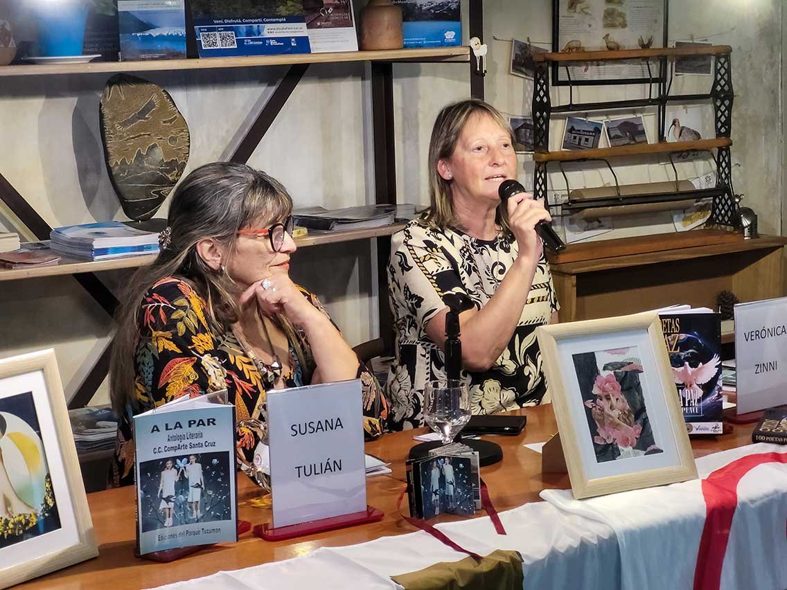 Las letras patagónicas arribaron a la sede de 25 de Mayo 279 (CABA) y reunieron a los presentes en torno a la palabra poética de dos destacadas voces de la literatura provincial: la Prof. Susana Tulián, quien presentó su obra "A la par", y la Prof. Verónica Zinni, con su antología "Cien Poetas por la Paz 2025".