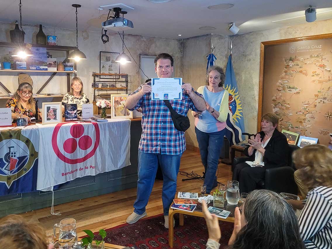 El encuentro se enriqueció con proyecciones audiovisuales, lectura de poemas y la interpretación en vivo de música folclórica patagónica, generando un ambiente íntimo y profundamente arraigado en la identidad cultural de Santa Cruz.