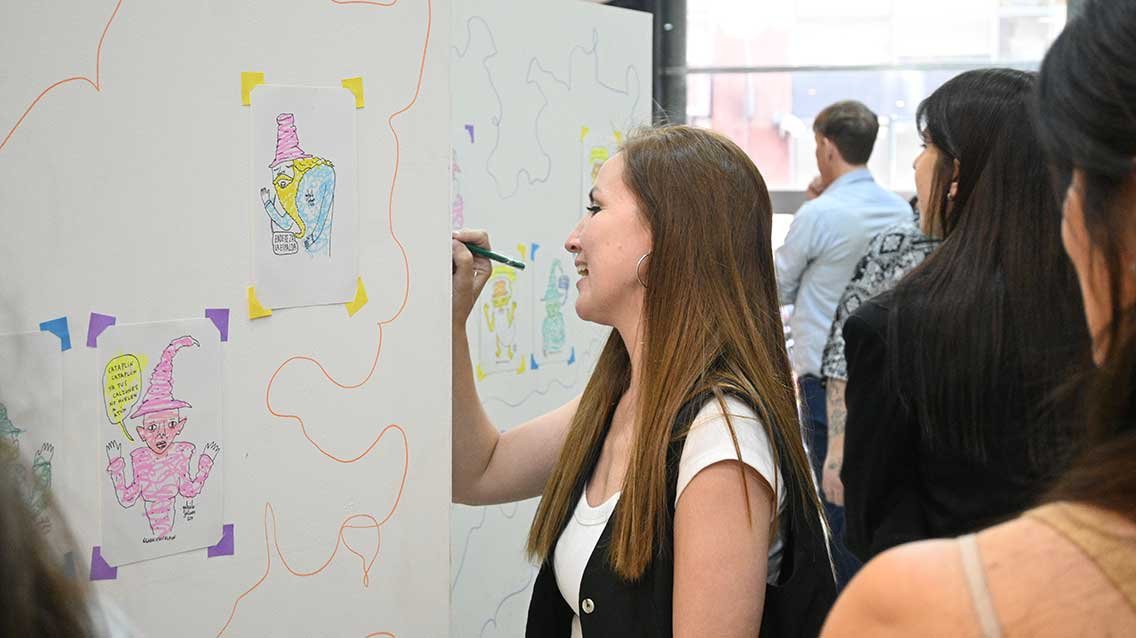Por otro lado, la muestra "Mimitos y pensares" ofreció una serie de dibujos que invitaron a los presentes a reflexionar sobre el amor propio y la autenticidad, planteando preguntas como: "¿qué significa realmente saber dibujar?, ¿está bien salirse de la raya?”. Al finalizar la presentación, Gabrielo agradeció el apoyo de la Casa de Santa Cruz.