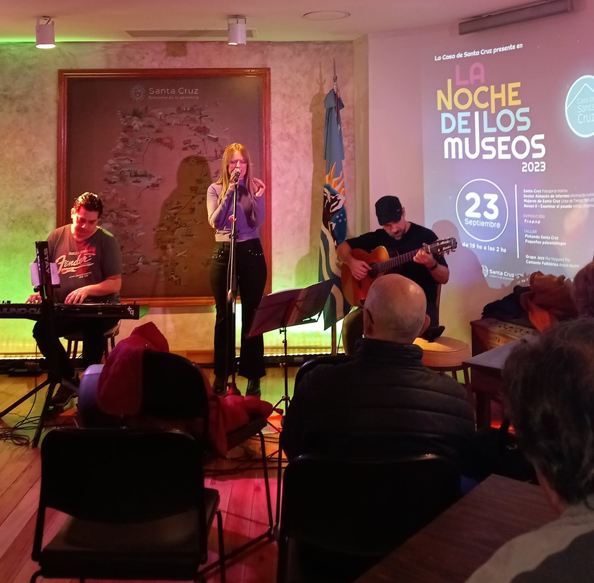 Casa de Santa Cruz participó por cuarto año consecutivo de esta 19° edición de La Noche de los Museos que se llevó a cabo bajo las propuestas “Santa Cruz. Patagonia intensa”; “Mujeres de Santa Cruz. Línea de Tiempo. 1820-2022”; Programa de Recuperación y Estímulo P.R.E.P.A.P.; talleres “Pintando Santa Cruz” y “Pequeños paleontólogos”; muestra “Nexos II – Examinar el pasado” y destacadxs artistas musicales santacruceñxs.