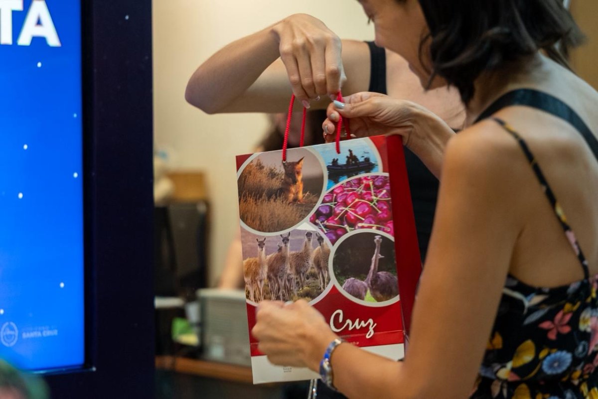 La actividad comenzó con la charla “Verano en Santa Cruz”, a sala llena, seguida de degustaciones típicas, sorteos y un recorrido por propuestas turísticas y productivas del territorio provincial.