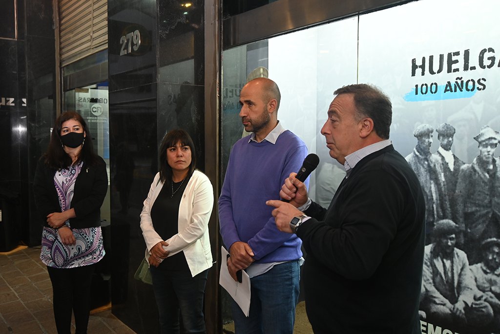 En este marco, en la vidriera del ingreso al edificio provincial en la Ciudad de Buenos Aires, se inauguró este viernes la muestra denominada A 100 años de las Huelgas Patagónicas que busca mantener vigente la historia del sur argentino y reivindicar la lucha obrera.