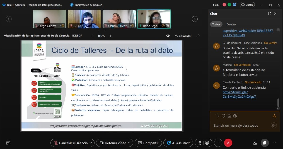 El ciclo de talleres continuará el 6, 11 y 13 de noviembre en la misma modalidad virtual, abordando temáticas como Catalogación, Metadatos e Interoperabilidad, con el fin de avanzar hacia la publicación de información vial de mayor calidad para la comunidad.