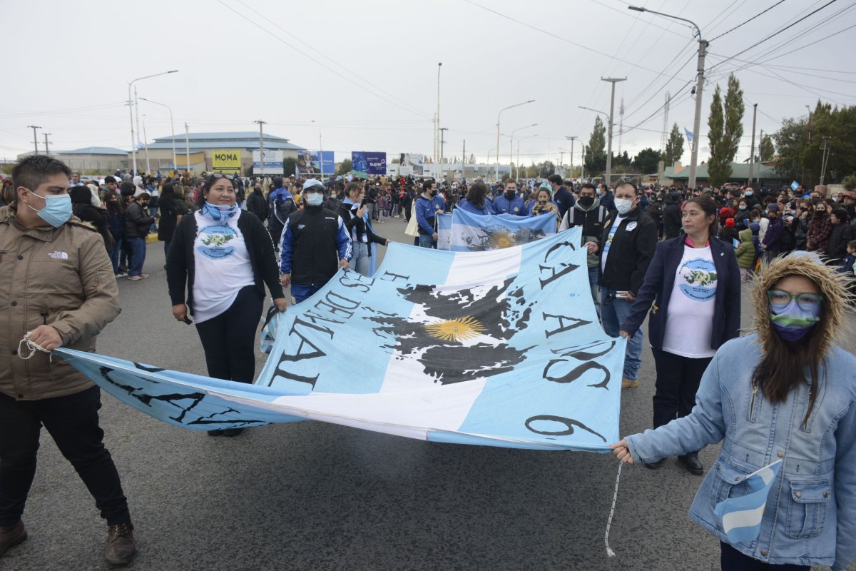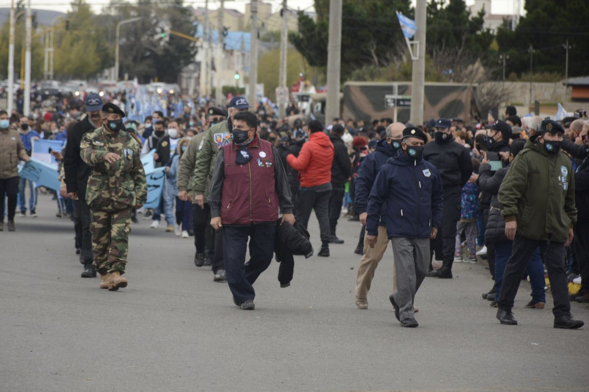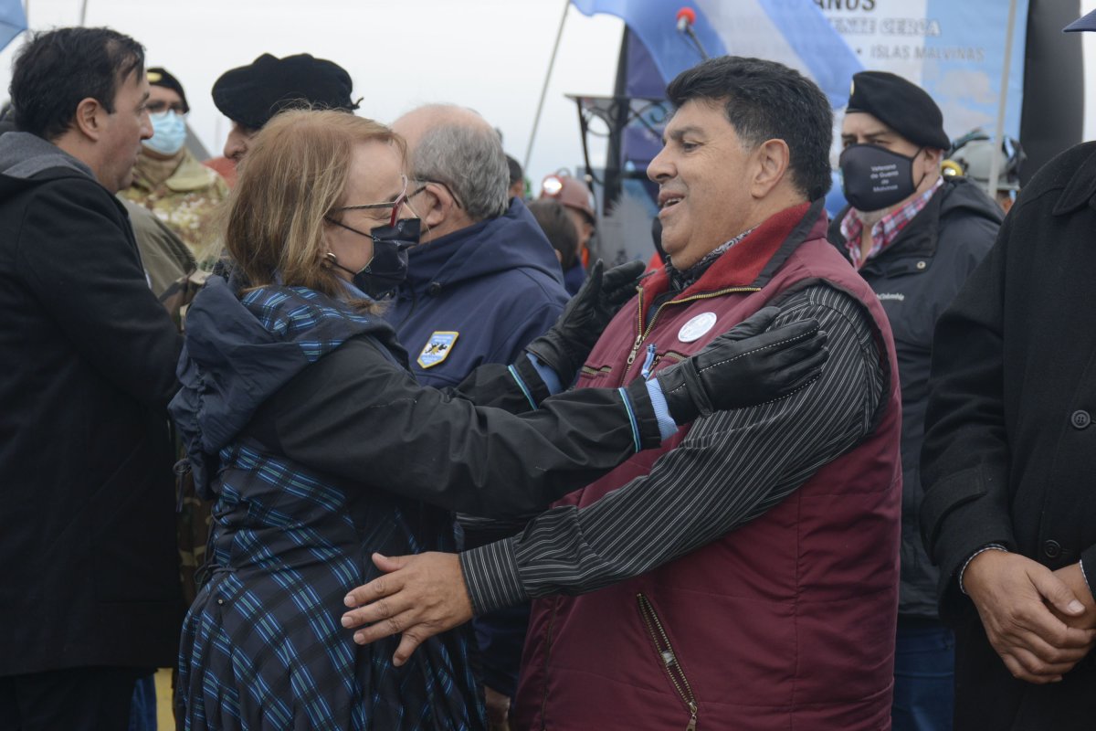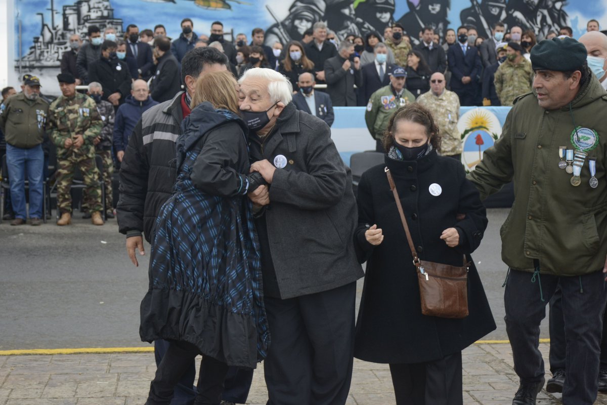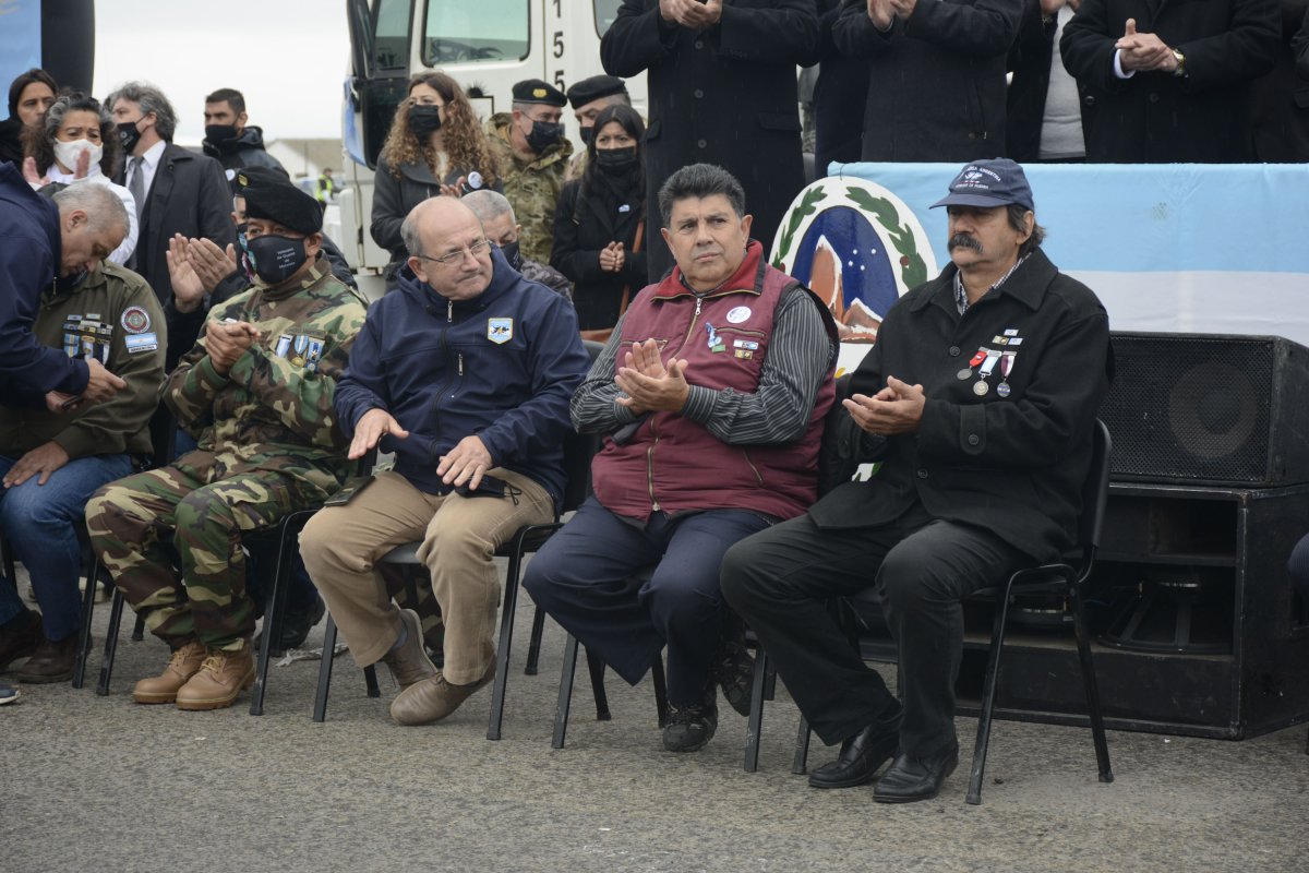 Se encontraban ubicados en un destacado lugar de honor, junto a los veteranos de guerra, Sonia Cárcamo y José Ortega, los padres de soldado santacruceño caído en Malvinas, José Honorio Ortega.
