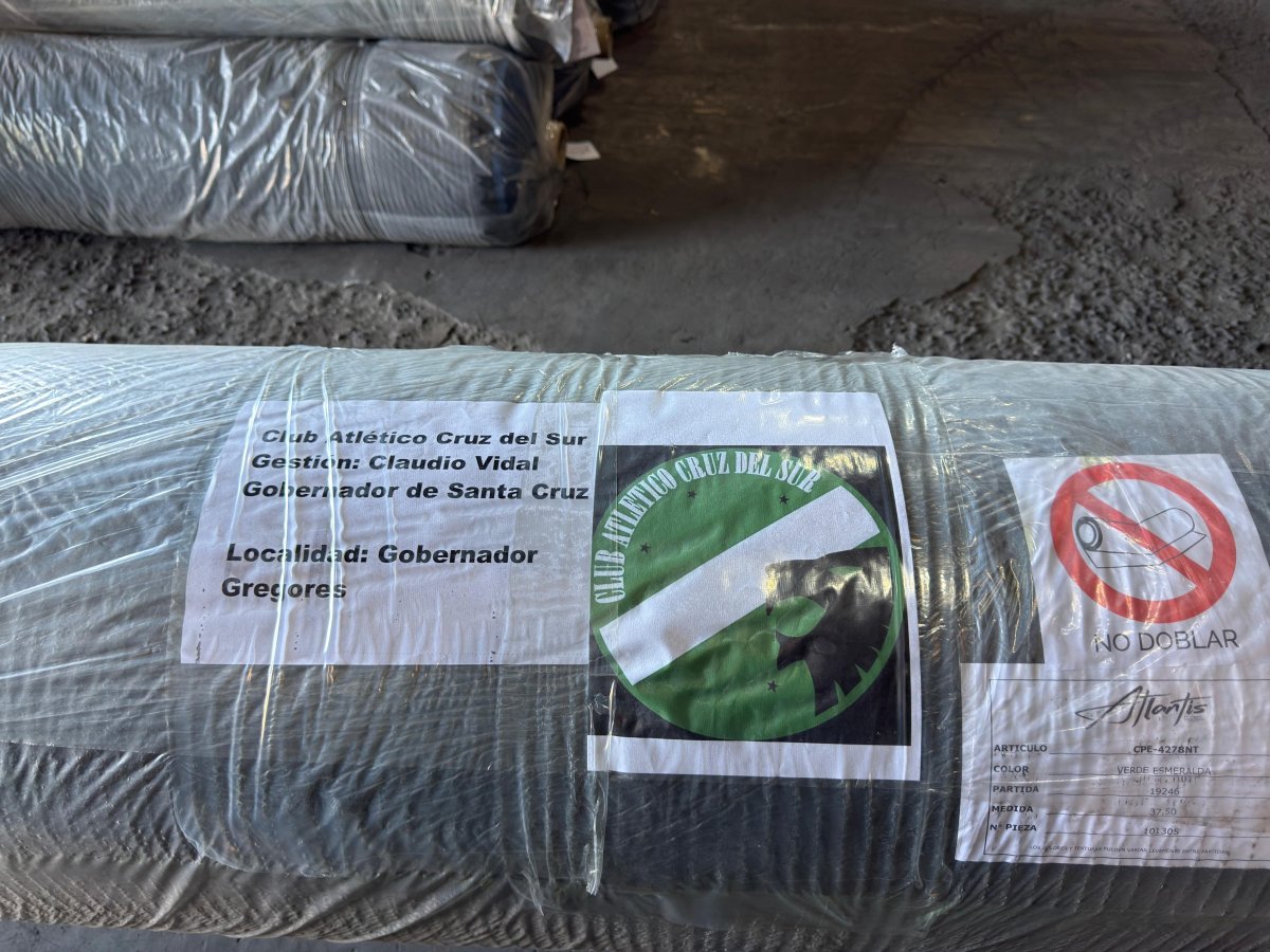 El gobernador de la provincia de Santa Cruz, Claudio Vidal, concretó en la Ciudad de Buenos Aires la entrega de la tercera cancha de césped sintético destinada a instituciones deportivas santacruceñas, la cual ya se encuentra en traslado hacia la localidad de Gobernador Gregores para ser instalada en el predio del Club Atlético Cruz del Sur, que este año celebra su 20° Aniversario.