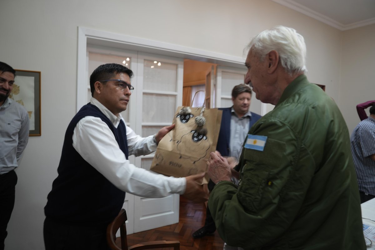 En un marco en un marco de mucha emoción y calidez, el gobernador manifestó su agradecimiento por la visita y valoró el coraje y honor de José Ruiz, Ramón Quevedo, Raúl Vázquez, Carlos Contreras, Andrés Fernández, Vicente Rojas, Javier Giménez y el piloto Daniel Herlein.