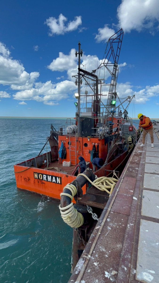 El “Norman” realiza tareas de abastecimiento una vez por semana, y se prevé que en los próximos 15 días comience a operar el buque “Patagonia”, ampliando la capacidad de procesamiento y consolidando la reactivación del circuito pesquero provincial.