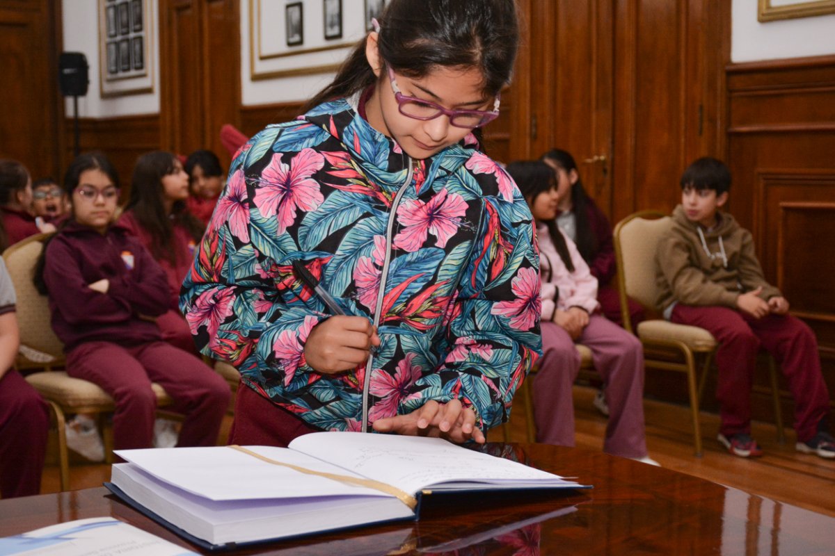 Esta mañana, el viaje educativo para conocer la historia y el funcionamiento de la provincia que comenzaron los estudiantes de cuarto grado del Colegio Santa Cruz tuvo su cierre con el recibimiento del gobernador, Claudio Vidal en Casa de Gobierno.