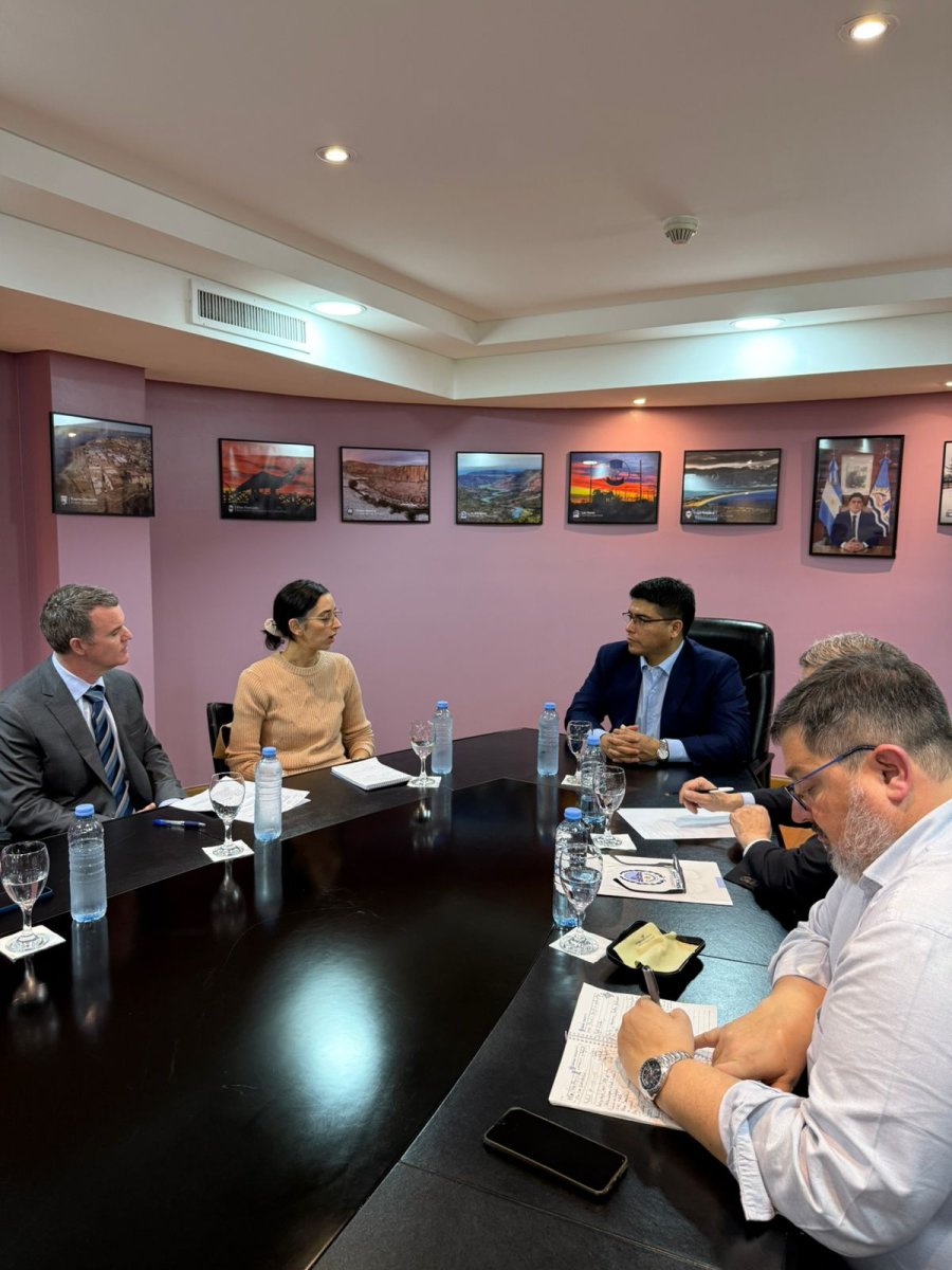 Participaron del encuentro Dave Thornton, director general de Newmont para Latinoamérica; Javier Velarde, director de Asuntos Corporativos para la región; y María Eugenia Sampalione, directora ejecutiva de Newmont Argentina.