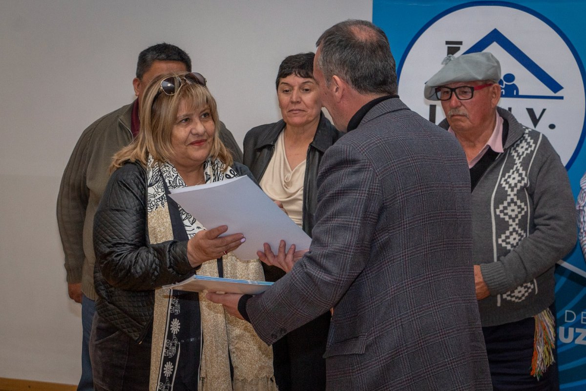 El acto fue encabezado por el jefe de Gabinete de Ministros, Daniel Álvarez, quien estuvo acompañado por el intendente municipal, Daniel Gardonio; el vocal por el Ejecutivo del IDUV, Pablo Álvarez; y el director de Escrituraciones del organismo, Alberto Oyarzo; además de autoridades provinciales y locales.