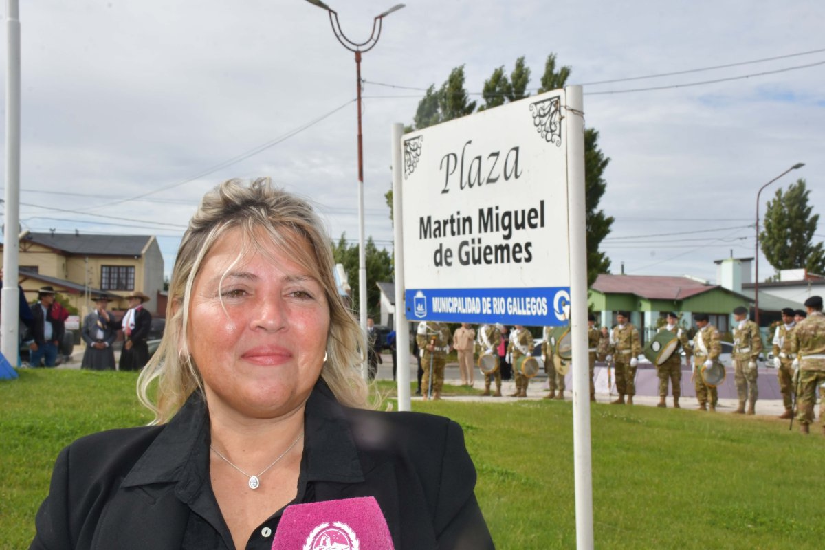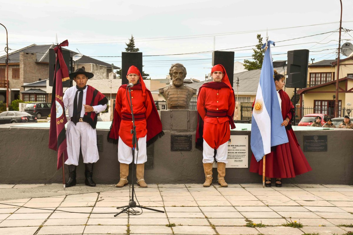 Este mediodía se llevó adelante el acto de conmemoración de los 241 años del natalicio del General Martín Miguel de Güemes, en la plaza ubicada en San Martín y Mendioroz de la capital santacruceña. El mismo contó con la presencia de las ministras de Gobierno, Belén Elmiger; y Secretaria General de la Gobernación, Soledad Boggio, quienes llevaron el mensaje del Ejecutivo Provincial.