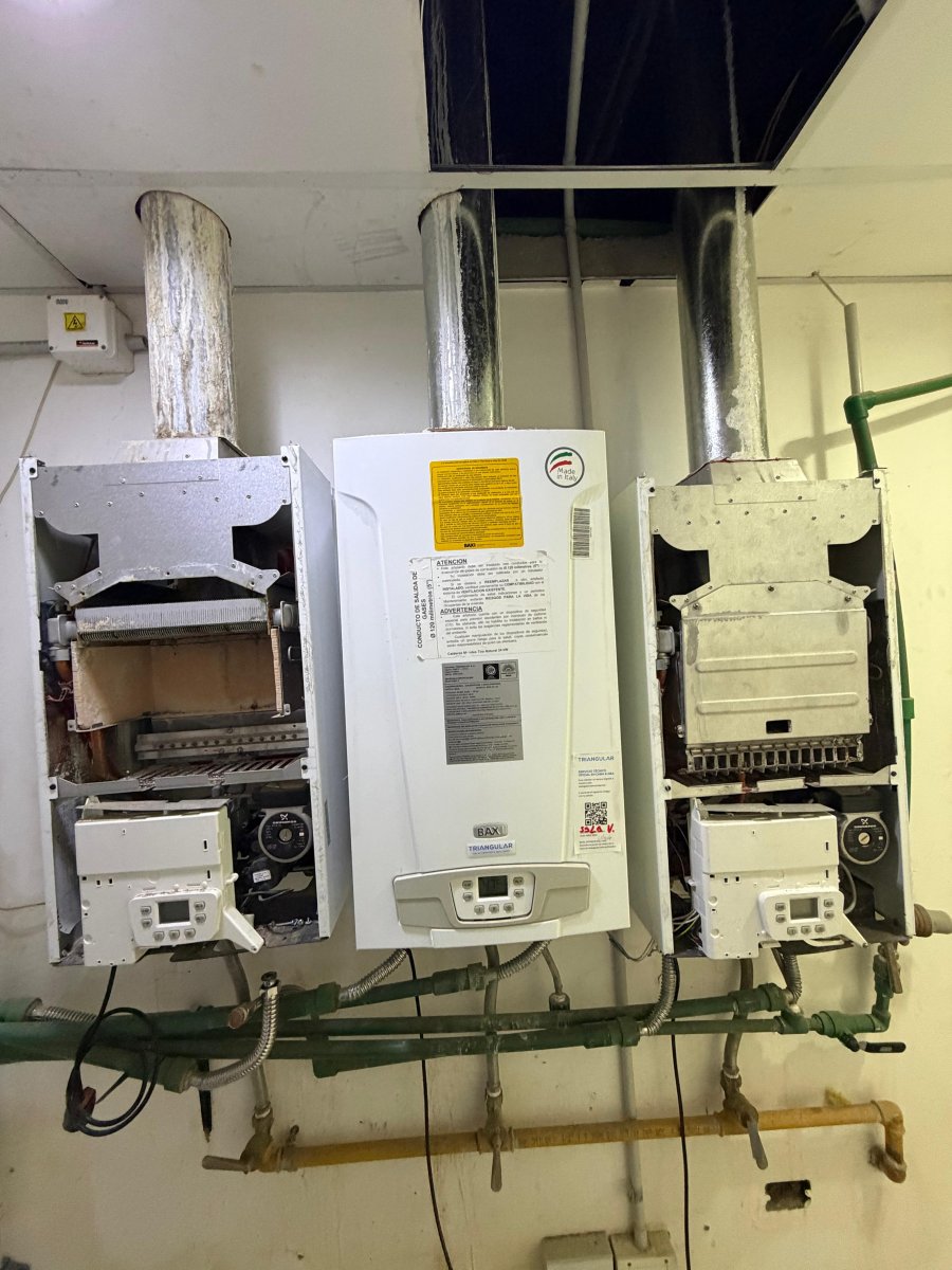 Los trabajos comprenden una intervención profunda en el sistema de calefacción por agua, con la instalación de tres nuevas calderas murales PEISA, revisión y adecuación de los sistemas de ventilación, incorporación de un tanque de agua destilada para automatizar el circuito cerrado, y la colocación de un nuevo vaso de expansión, termostatos y bombas circuladoras y reguladoras.