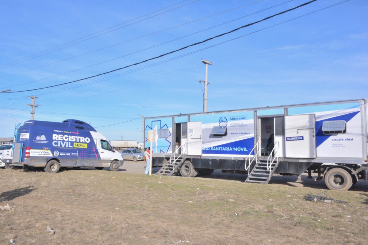 El tráiler del Ministerio de Salud y Ambiente con el servicio de vacunación, atención médica y pediátrica; el tráiler de la Subsecretaría de Asuntos Registrales con asesoramiento para actualizar el Documento Nacional de Identidad (DNI) o gestión de trámites gubernamentales; y la Secretaría de Estado de Igualdad e Integración, con diferentes propuestas lúdicas y merienda para los niños y niñas, son las diferentes iniciativas que acercó el Estado Provincial al barrio Ayres Argentinos de Río Gallegos.