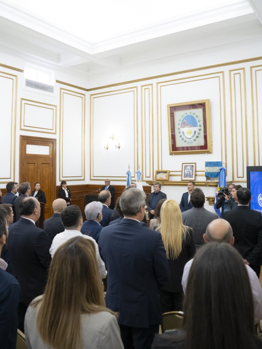 El vicegobernador de la provincia de Santa Cruz, Fabián Leguizamón, presidió el acto en horas de la mañana de este lunes junto al ministro de Energía y Minería, Jaime Álvarez, y el presidente de FOMICRUZ S.E., Oscar Vera, mediante el cual se concretó la firma de contratos para la cesión de diez áreas hidrocarburíferas del Golfo San Jorge, que se realizó en el Salón Blanco de Casa de Gobierno con la presencia de diputados, intendentes, presidentes de fomento, ministros, autoridades provinciales, representantes del sector privado y medios de comunicación.