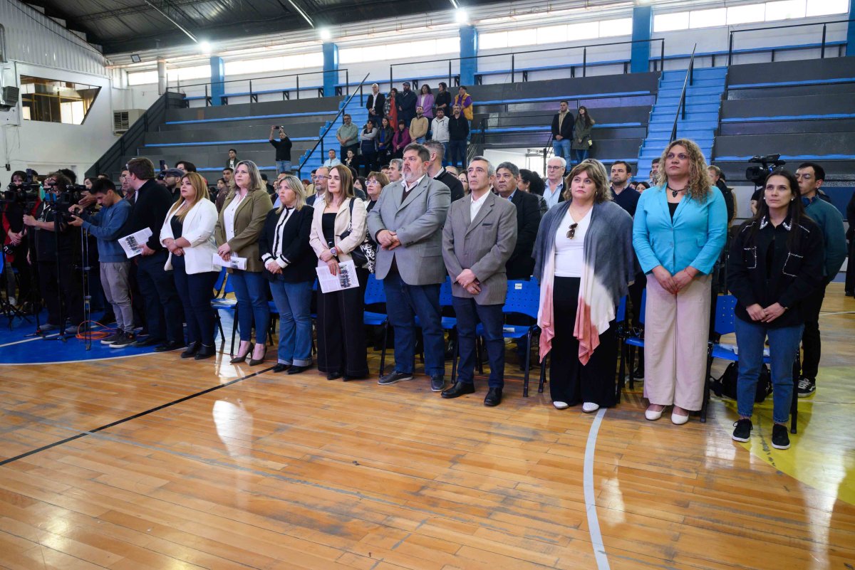 Además, fueron parte de la ceremonia, los ministros de la Producción, Comercio e Industria, Nadia Ricci; de Trabajo, Empleo y Seguridad Social, Ezequiel Verbes; de Energía y Minería, Jaime Álvarez; de Salud y Ambiente, María Lorena Ross; Secretaría General de la Gobernación, Soledad Boggio; y de Desarrollo Social, Igualdad e Integración, Luisa Cárdenas. A ellos se sumó el diputado Pedro Luxen; el presidente del Consejo Agrario Provincial, Hugo Garay; concejales; funcionarios del Ejecutivo Provincial; y la comunidad.