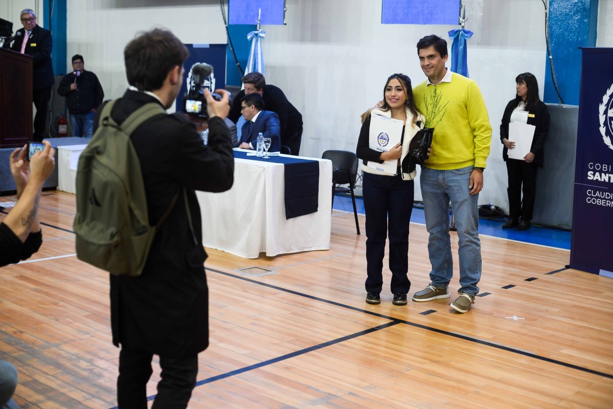 En ese marco, el gobernador Claudio Vidal se dirigió a los presentes, indicando en primera instancia que la decisión que se tomó en el día de hoy es muy importante. “Vivimos en la segunda provincia en extensión más grande del país, pero sin embargo, a pesar de eso, miles de familias no tienen un terreno propio en donde puedan construir sus sueños, en donde puedan construir su vivienda. Es por eso que este gobierno tiene la firme decisión política de hacer lo que realmente tenemos que hacer que es, entregar tierras a los santacruceños nacidos y criados o que tomaron por opción vivir en esta provincia”, expresó.
