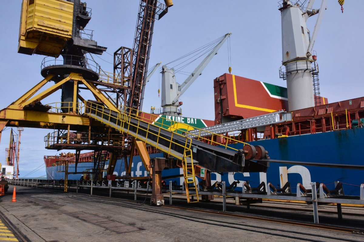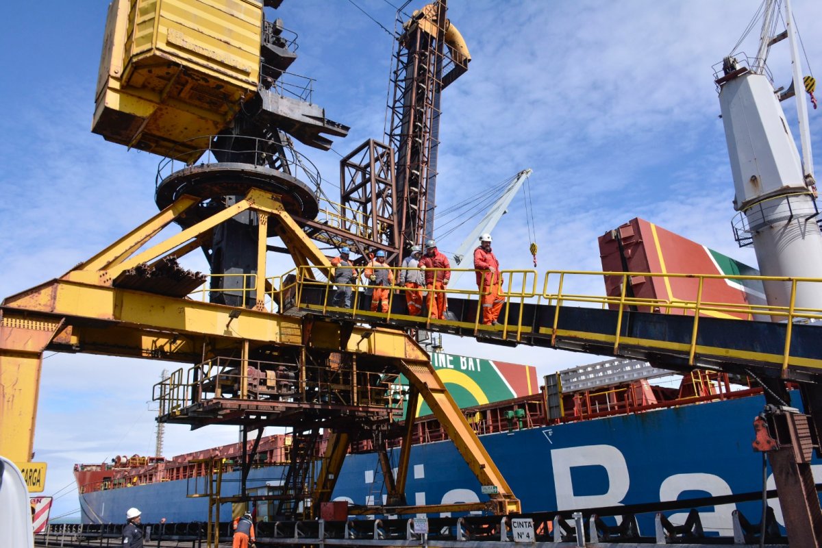 Desde el Puerto de Punta Loyola, el interventor Pablo Gordillo y operarios de la empresa estatal coordinan la salida de 30.000 toneladas de mineral, culminando un ciclo logístico que integra la producción de la cuenca con los mercados internacionales.