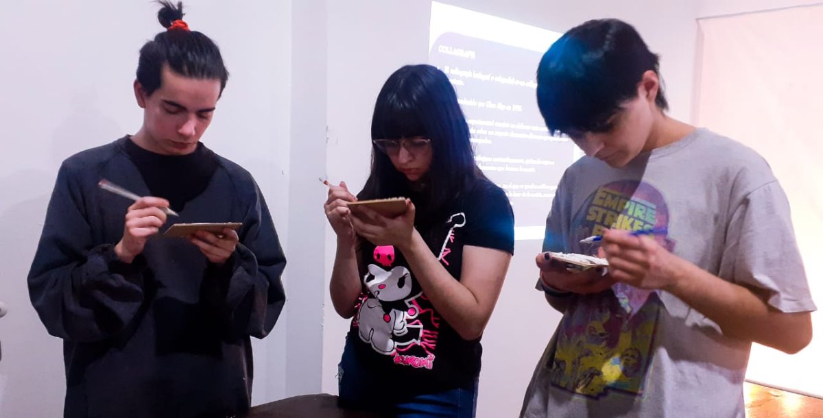 El taller que se llevó adelante en Artes Visuales, se realizó en el marco del cierre de la muestra "Temporada de Micelio y Amores", la cual reunió la producción de doce artistas/estudiantes, quienes contaban con proyectos finales de obra en la especialidad de Grabado y Arte Impreso referentes al último año de la carrera del Profesorado en Artes Visuales.