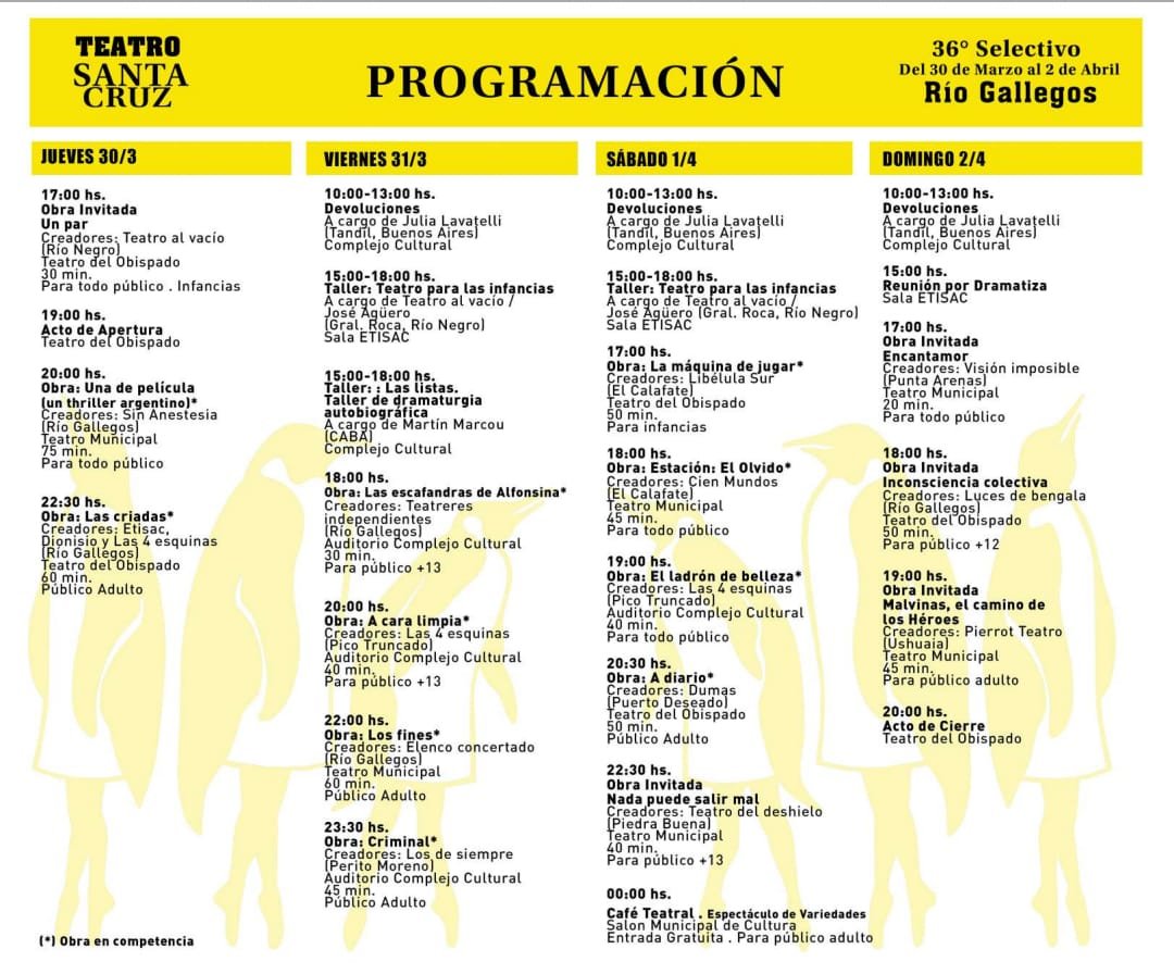 Agrupaciones teatrales de distintos puntos del país y de Chile, tendrán como sede central a Río Gallegos, para la realización de espectáculos teatrales del jueves 30 de marzo al domingo 2 de abril.
