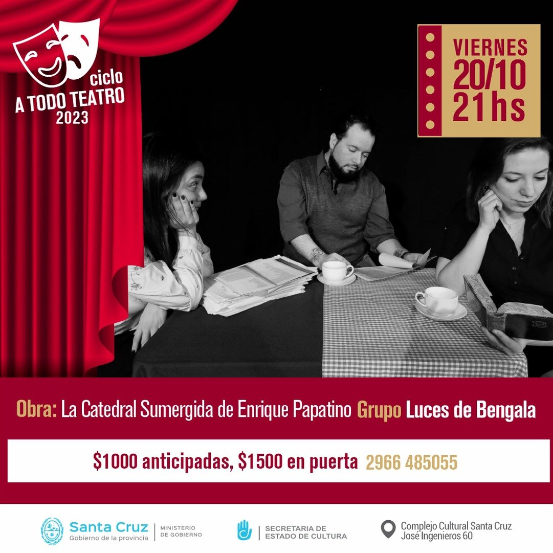 El Gobierno de la Provincia, a través del Ciclo A Todo Teatro de la Secretaría de Estado de Cultura, presenta este viernes 20 de octubre en las instalaciones del Salón Auditorio Luis Villarreal, al grupo Luces de Bengala con la obra "La Catedral Sumergida".