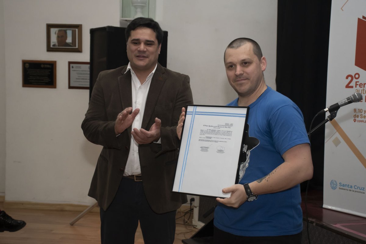 Durante el acto que tuvo lugar en el Salón Auditorio Luis Villarreal del Complejo Cultural Santa Cruz, participaron el secretario de Estado de Cultura, Oscar Canto; la directora Provincial de Cultura, Gabriela Luque; el diputado Provincial, Martín Chávez; el secretario de Cultura de Neuquén, Marcelo Colonna; Lucia Rossi vicepresidenta del Consejo Federal de Cultura y secretaria de cultura de Tierra del Fuego; la subsecretaria de Cultura de Chubut, Carla Olivet; Pablo Novas, secretario y coordinador de Postgrado de la UNPA; el presidente de la SADE Filial Santa Cruz, Pablo Canobra; Verónica Lamberti, vicepresidenta de la SADE; y directores de Fondos Editoriales de la Patagonia.