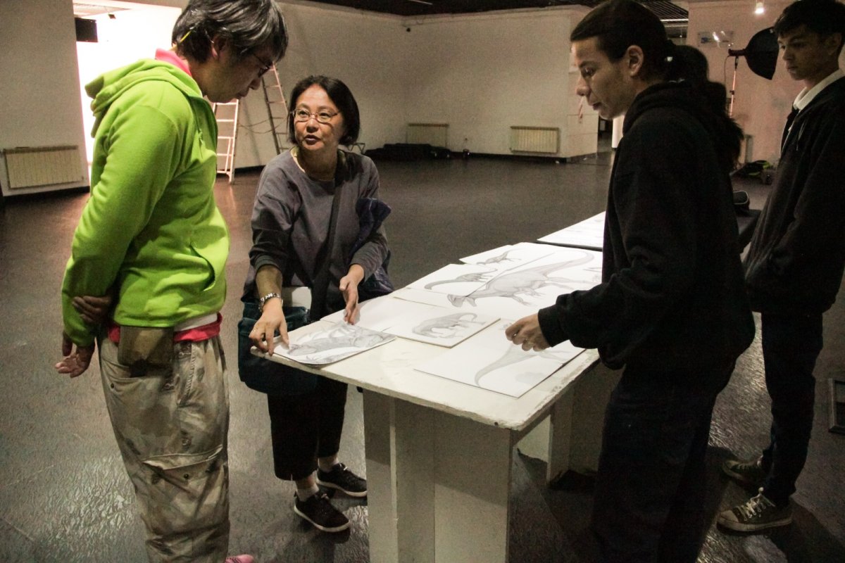 Con la ayuda de un traductor, se logró dialogar con el reconocido realizador audiovisual Cuissot, quien mostró su interés “por los restos que hay aquí, como por ejemplo los del Titanosaurio Dreadnoughtus, que es una especie muy rara y única, y queremos compartir fósiles auténticos de dinosaurios.