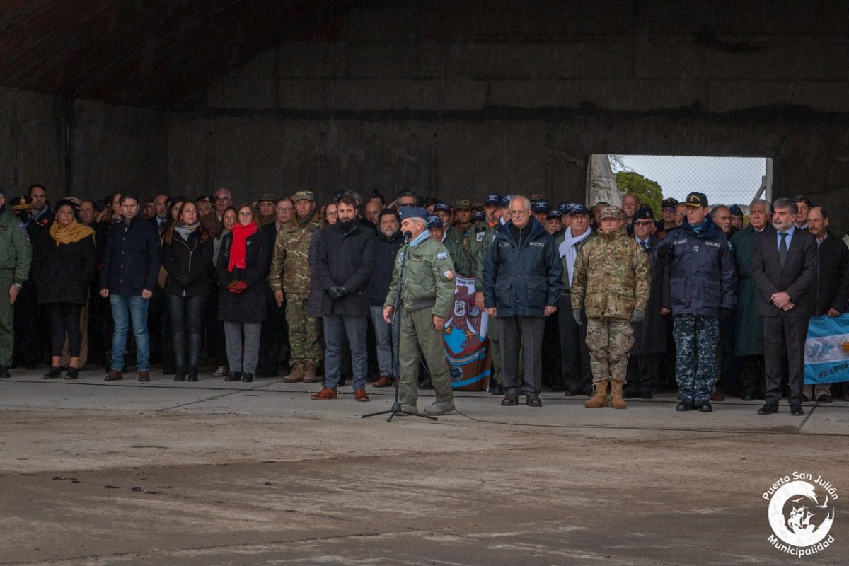 El Ejecutivo Provincial, representando por el ministro de Gobierno, Leandro Zuliani, se hizo presente en el acto central del 40° Aniversario del Bautismo de Fuego de la Fuerza Aérea Argentina, que se concretó en el Aeropuerto Capitán José Vázquez de Puerto San Julián.