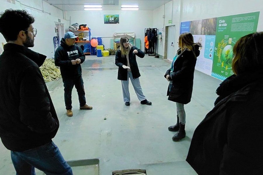 En el encuentro se destacó la posibilidad de que estudiantes de la Escuela de Biología Marina de Caleta Olivia realicen prácticas profesionalizantes en el lugar. La recorrida incluyó un paso por la planta para observar de primera mano las modalidades de cultivo que la Fundación implementa en el marco de este piloto científico-productivo.