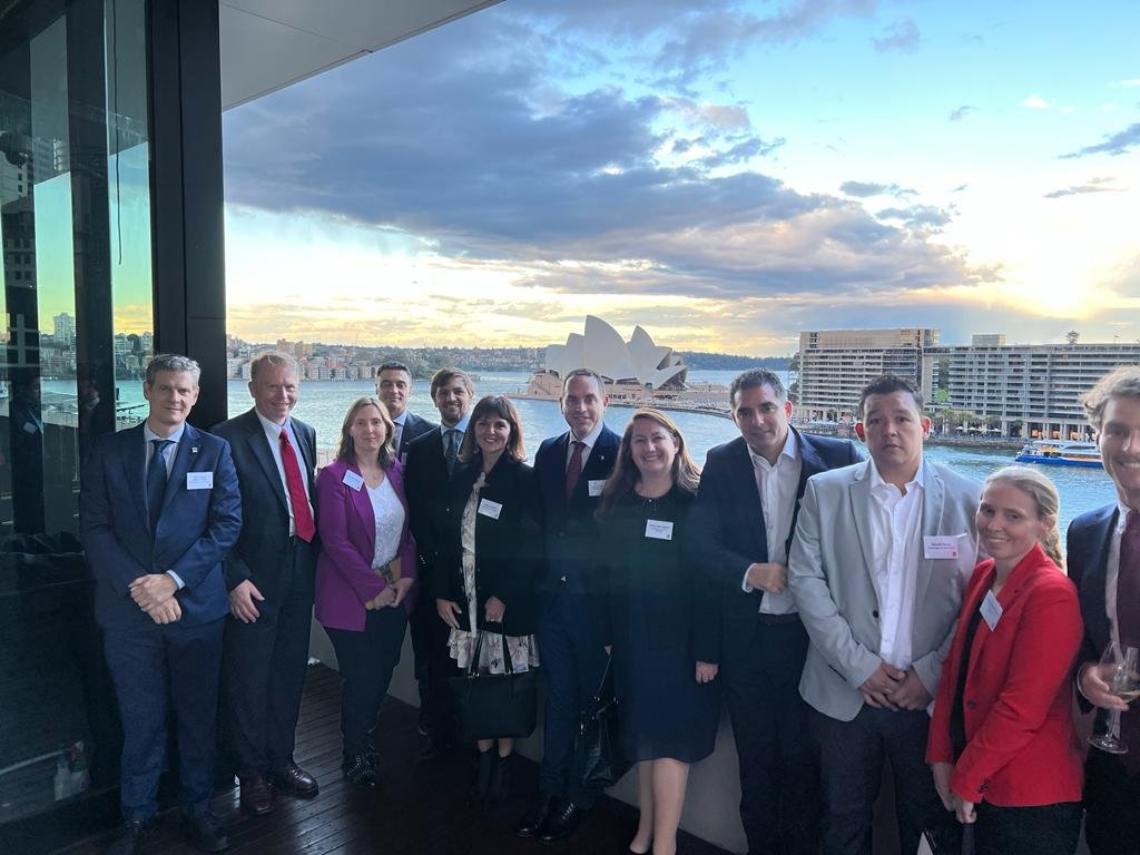 Para finalizar el primer día de trabajo en Australia, Silvina Córdoba junto al secretario de Minería, Gerardo Terraz; la subsecretaría de Geología de Minería, Mercedes Arguello; y el presidente de FOMICRUZ, Esteban Tejada, participaron de un meeting en el Museo de Arte Contemporáneo en Sydney, acompañados del Gobierno de Nueva Gales del Sur.